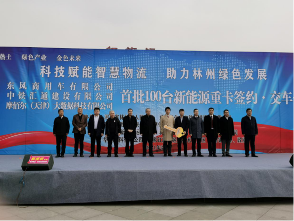 3月16日,東風商用車有限公司、中鐵匯通建設有限公司、摩佰爾(天津)大數據科技有限公司,在河南林州舉行首批100輛新能源重卡東風天龍KL電動牽引車簽約及交車儀式。