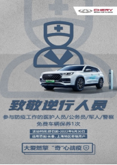 在全民戰(zhàn)疫期間,奇瑞還為上海、長春等抗疫重點(diǎn)地區(qū)推出專屬的“大愛燃擎 奇心戰(zhàn)疫”活動,為脫保用戶延長質(zhì)保期,為車主圈層排除焦慮情緒。而為了致敬抗疫行動中的英雄們,奇瑞還特別針對參與防疫的醫(yī)護(hù)人員、公務(wù)員、軍人和警察車主等群體推出免費(fèi)保養(yǎng)的福利,在特殊時期送出品牌的綿薄心意。此外奇瑞還為疫情地區(qū)車主提供了免費(fèi)的車內(nèi)消殺并發(fā)放抗疫暖心包,與大家“奇”心戰(zhàn)疫。