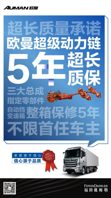 為了讓卡友更長久、更高效地用車。福田戴姆勒汽車想卡友之所想,急卡友之所急,出臺(tái)了超長質(zhì)量承諾:歐曼超級(jí)動(dòng)力鏈5年超長質(zhì)保,三大總成指定零部件、自動(dòng)擋變速箱整箱保修5年,且不限首任車主。真正做到讓卡友放心用車、放心養(yǎng)車、放心賺錢。這無疑是歐曼對(duì)產(chǎn)品的自信,也是把真金白銀讓利于用戶的切實(shí)體現(xiàn)。