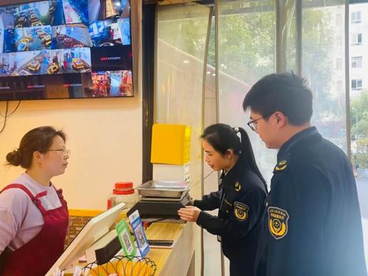 結(jié)合不同區(qū)域業(yè)態(tài)特點(diǎn),執(zhí)法人員實行精準(zhǔn)監(jiān)管、分類施策,織密食安與計量雙重防護(hù)網(wǎng):在農(nóng)貿(mào)市場,趕在早高峰前開展專項巡查,檢查生鮮、鹵菜、早餐等攤位32家,核驗秤具41臺,督促市場開辦方健全計量臺賬、落實主體責(zé)任,守好居民“菜籃子”安全與公平底線;在校園周邊,聚焦學(xué)生消費(fèi)群體,規(guī)范散裝糕點(diǎn)、水果撈、炒貨等商戶17家,手把手向200余名學(xué)生普及計量維權(quán)技巧,提升青少年自我保護(hù)意識;在環(huán)湖綠道沿線夜宵街區(qū),緊扣專項行動節(jié)點(diǎn)開展夜間突擊檢查,檢查烤魚、串串等熱門餐飲業(yè)態(tài)19家,核查秤具27臺,糾正不規(guī)范稱重行為4處,守護(hù)市民夜間飲食消費(fèi)安全;在老字號餐飲店,重點(diǎn)檢查簡陽羊雜店、巴人冒菜店等8家老店,引導(dǎo)經(jīng)營者堅守“準(zhǔn)秤足兩”底線,以誠信口碑守護(hù)品牌、傳承食安文化。