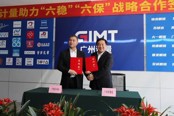 廣州計量院副院長胡良勇與廣州市眼鏡行業(yè)商會會長何錦泉簽約