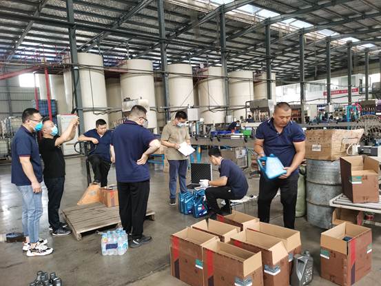 (執(zhí)法人員到企業(yè)成品庫抽樣)