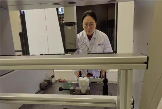 恒溫室內(nèi)一片安靜,空氣中飄散著濕潤的氣息,墻壁上的溫濕度表顯示溫度20℃,濕度50%,長度室的施山菁說,恒溫室內(nèi)部溫度全年要保持在恒溫(20℃±2℃)、恒濕(30%~70%)的環(huán)境條件下,這樣才能使測量設(shè)備隨時隨刻保持高精度高效率工作。從9時開始到臨近中午吃飯,都沒有離開過操作臺,之后與客戶講解了三坐標測量,她說三坐標是檢驗工件的一種精密測量方法,廣泛應(yīng)用于機械制造業(yè),汽車工業(yè)等現(xiàn)代工業(yè)中,三坐標檢測是運用三坐標測量機對工件進行形位公差的檢驗和測量。判斷該工件的誤差是不是在公差范圍之內(nèi),從而完成零件檢測、外形測量、過程控制等任務(wù)。施山菁說要確保每個檢測器具的準確無誤,是我們的神圣職責。胸懷夢想,腳踏實地,她用熱血和青春書寫著精彩的計量之路。
