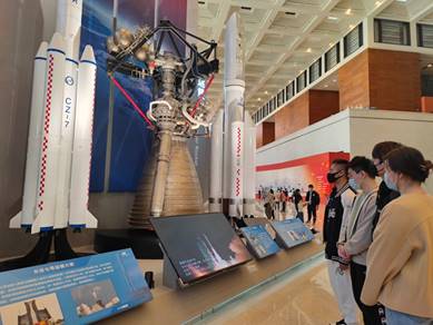 在參觀長征七號火箭系統(tǒng)的過程中,大家了解到,運載火箭作為太空探索的運載工具,其有著,“運載能力有多大,太空探索舞臺就有多大”的重要作用。中國航天人在運載火箭的研究設(shè)計中不斷探索,艱苦奮斗,取得了長征二號F、長征七號、長征五號B運載火箭以及新一代載人運載火箭的成功建設(shè),火箭整體技術(shù)越來越成熟,火箭發(fā)射所需要的周期也越來越短,。成員們?yōu)椴粩嗟苌该桶l(fā)展的運載火箭系統(tǒng)建設(shè)深深折服,為中國航天的自主創(chuàng)新成果感到無比自豪。