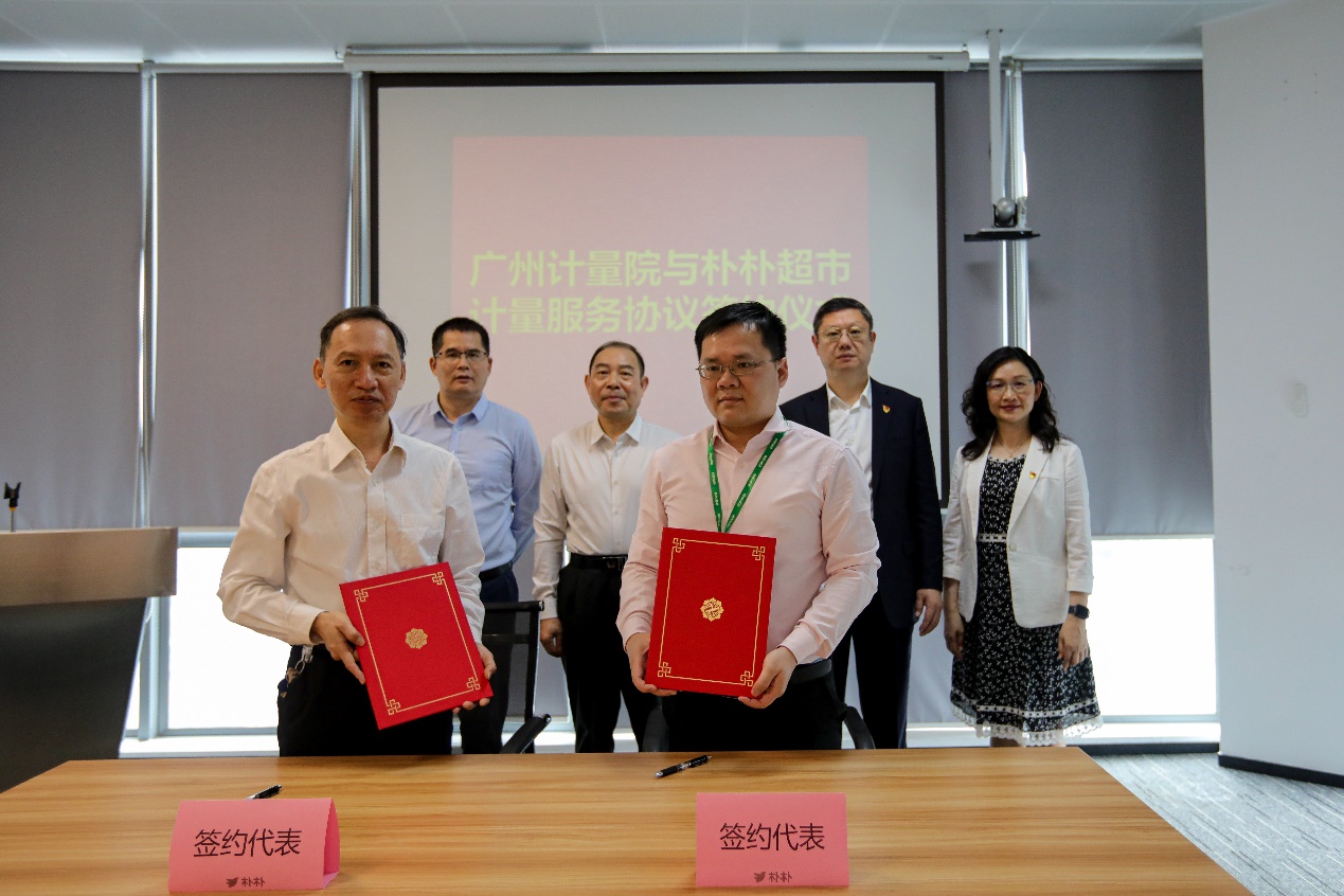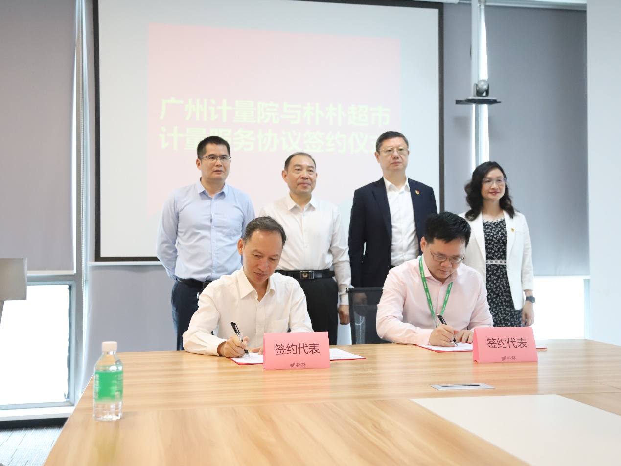廣州計量院黃鋒副院長與樸樸超市羅文總監(jiān)代表雙方單位現(xiàn)場簽約