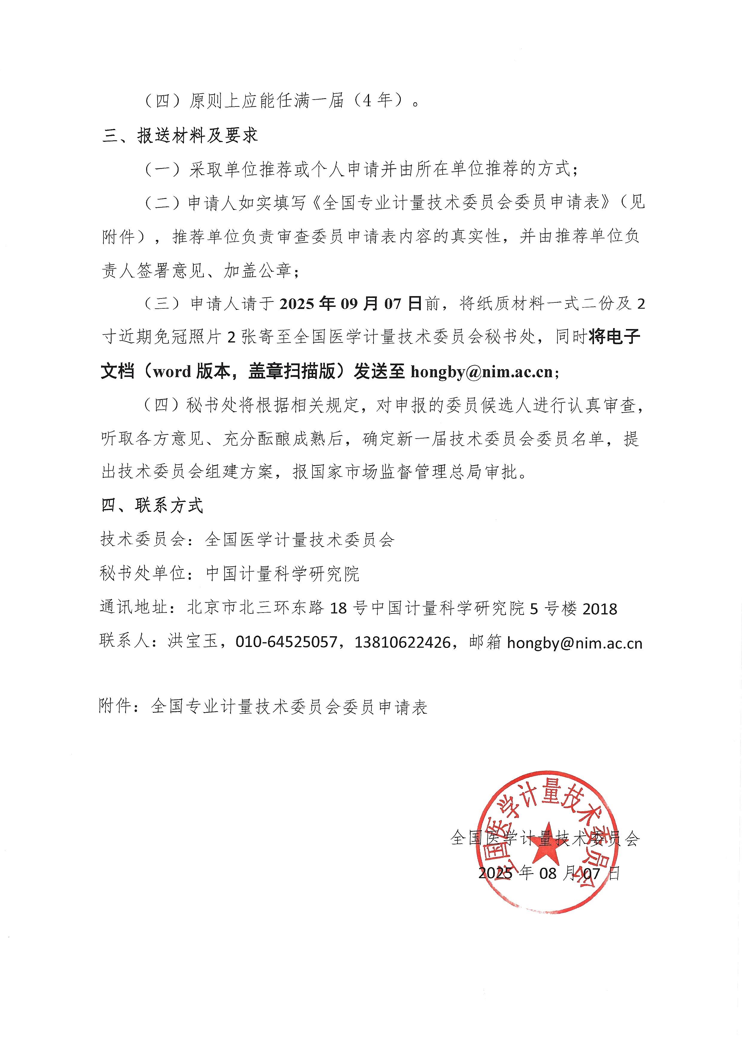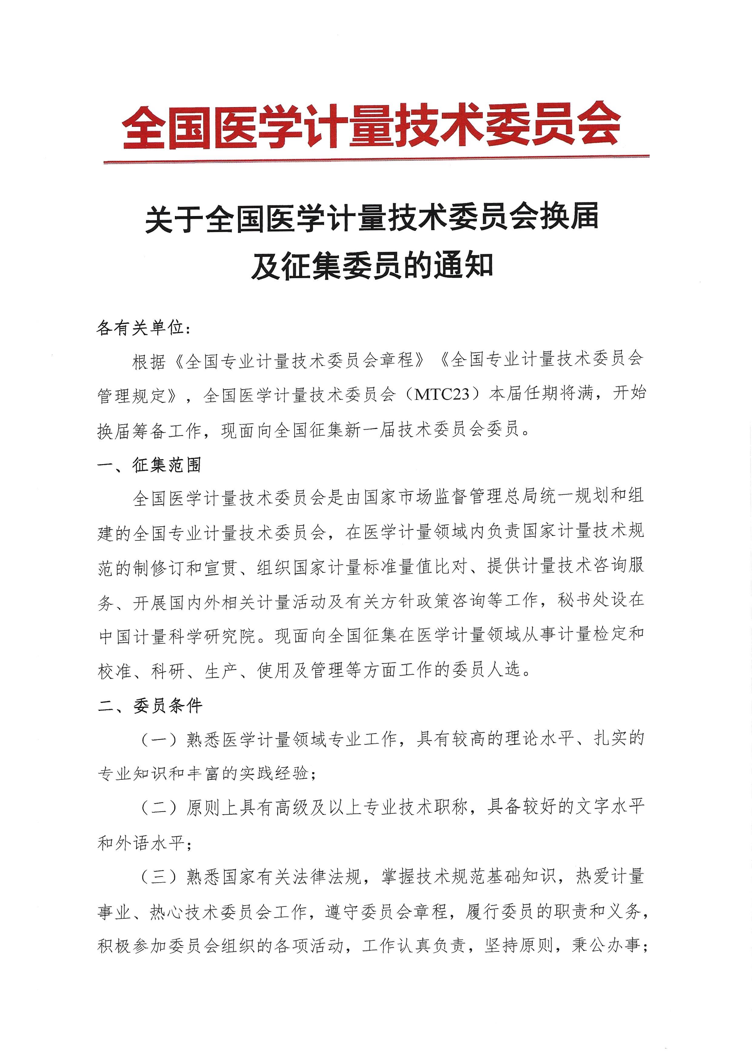 關(guān)于全國醫(yī)學(xué)計量技術(shù)委員會換屆及征集委員的通知