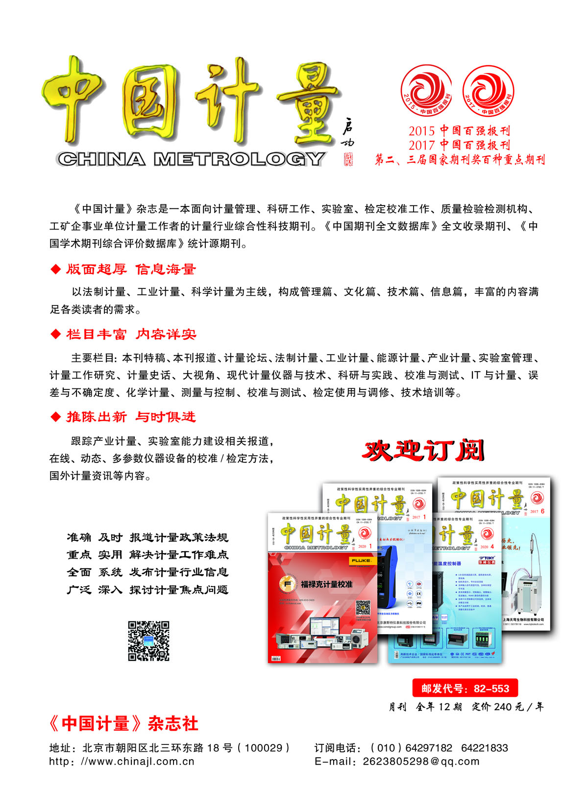 《中國計量》雜志系國家市場監(jiān)督管理總局主管的計量領(lǐng)域最權(quán)威的國家級綜合性專業(yè)期刊。法制計量、工業(yè)計量、科學(xué)計量三大主線,政策性、科學(xué)性、實用性三者并重,管理篇、文化篇、技術(shù)篇、信息篇四大版塊內(nèi)容。國內(nèi)外公開發(fā)行(刊號:CN11-3720/T)。
