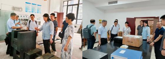 在揚中市檢驗檢測中心,調(diào)研組參觀了檢定設(shè)備,了解了計量部檢測能力以及運行管理情況。