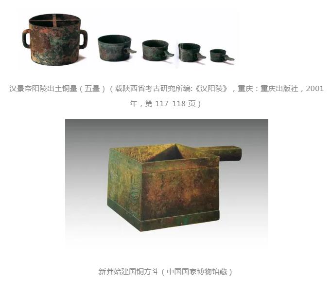 據(jù)統(tǒng)計(jì),目前所見兩漢標(biāo)準(zhǔn)量器共90余件,是歷代量器留傳至今最多的朝代。雖漢在度量衡方面“漢承秦制”,是秦制的延續(xù),但與秦量相比,西漢量器的特點(diǎn)是:器形變化多樣,有與秦量形制相似的銅量,也有單耳廣口的圓形銅量和長(zhǎng)柄小銅量,還有木制方量等。新莽量器以設(shè)計(jì)先進(jìn),刻銘詳盡,制作精美為著稱,讓人驚嘆于2000前青銅鑄造工藝水平之高超,其中以新莽銅嘉量最為著名。東漢量器在制作之精美,刻銘之詳盡,明顯不及新莽時(shí)期,但東漢量器使用范圍更廣泛,器物形式多樣,質(zhì)地有銅質(zhì)、陶質(zhì)、石質(zhì)等。