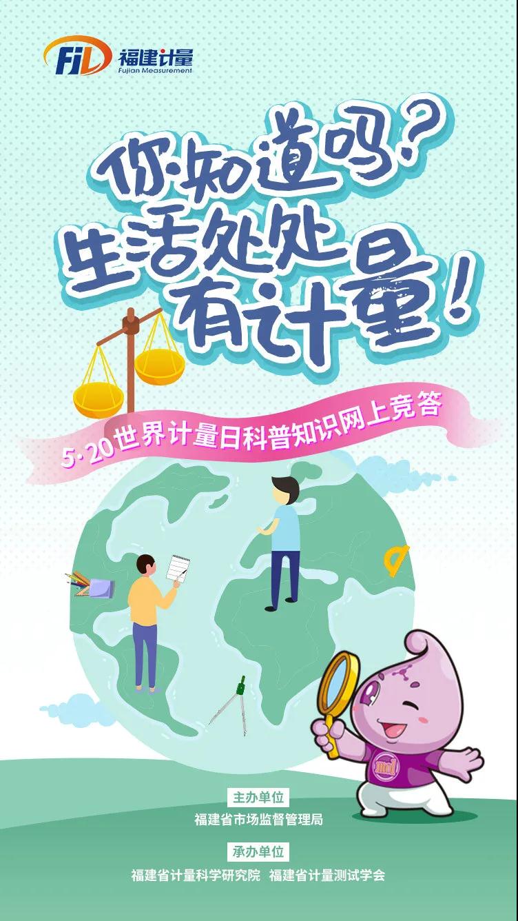 今年福建省市場監(jiān)管局將與省計量科學(xué)研究院、省計量測試學(xué)會攜手開展“5·20計量科普知識網(wǎng)上競答”活動,活動于5月18日啟動,并將一直持續(xù)至5月22日。