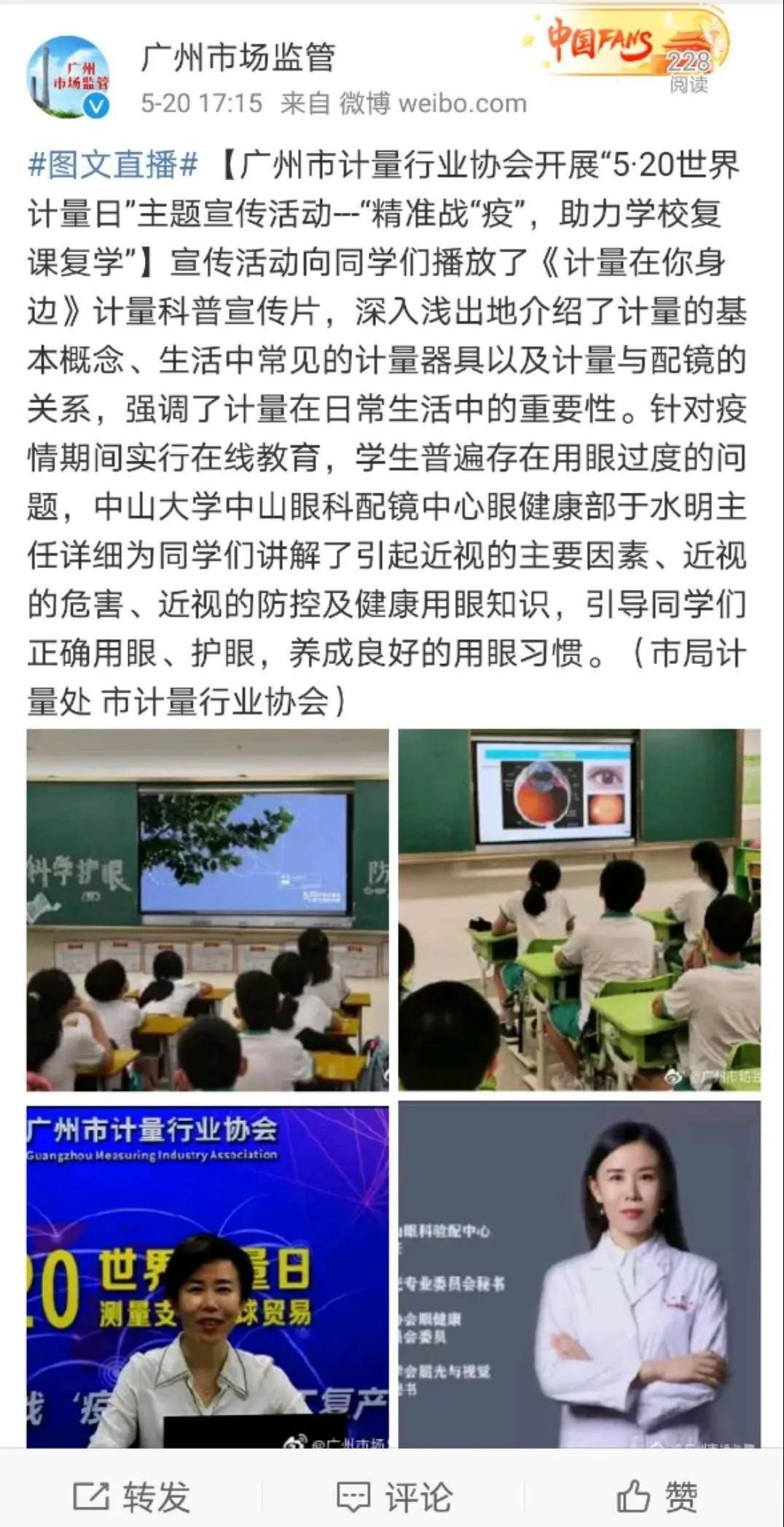 鳳凰花開小滿天,少年視力掛心間。2020年5月20日是世界計量日,也是中國傳統(tǒng)二十四節(jié)氣之一小滿,為進一步普及健康科學(xué)用眼知識,提高學(xué)生視力健康水平,廣州市計量行業(yè)協(xié)會與體育東路小學(xué)聯(lián)合開展了一次“科學(xué)護眼,防控近視”專題知識講座,由各班老師組織學(xué)生在課室里觀看講座視頻。