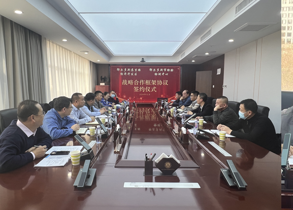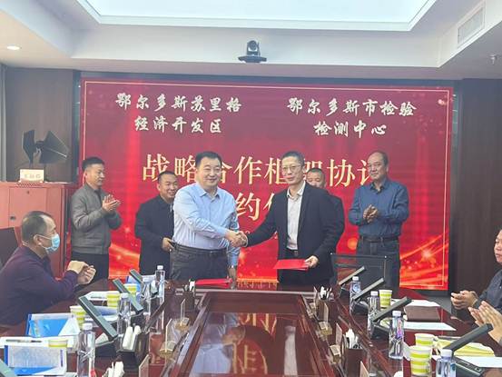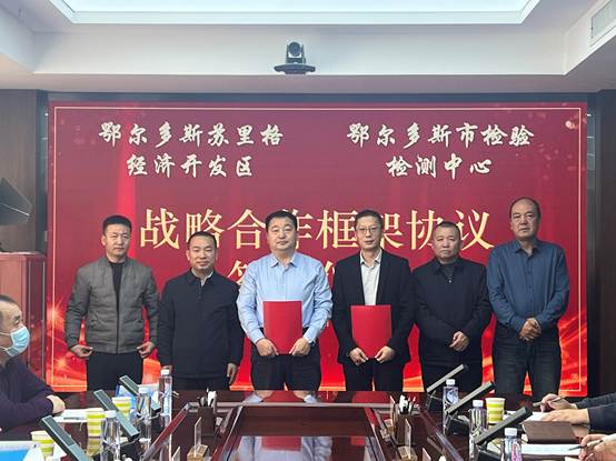 12月26日下午,鄂爾多斯市檢驗檢測中心與鄂爾多斯蘇里格經(jīng)濟開發(fā)區(qū)簽訂戰(zhàn)略合作框架協(xié)議,雙方就推動園區(qū)企業(yè)綠色低碳循環(huán)發(fā)展方面達(dá)成共識。鄂爾多斯市檢驗檢測中心副主任薛彥倫,蘇里格經(jīng)濟開發(fā)區(qū)黨工委委員、管委會副主任烏蘭巴特爾出席簽約儀式并致辭。