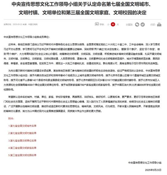 5月23日,中央宣傳思想文化工作領(lǐng)導(dǎo)小組發(fā)布《關(guān)于認定命名第七屆全國文明城市、文明村鎮(zhèn)、文明單位和第三屆全國文明家庭、文明校園的決定》,甘肅省計量研究院被授予“全國文明單位”稱號,這也是全國精神文明建設(shè)領(lǐng)域的最高榮譽。