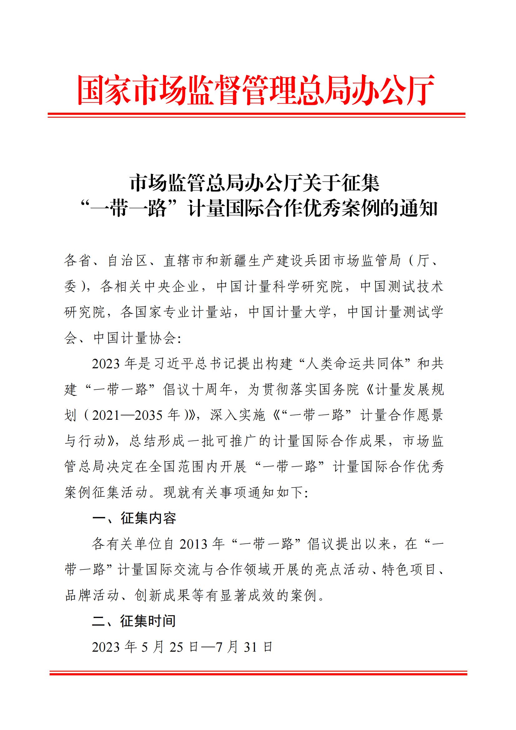 市場監(jiān)管總局辦公廳關(guān)于征集“一帶一路”計量國際合作優(yōu)秀案例的通知