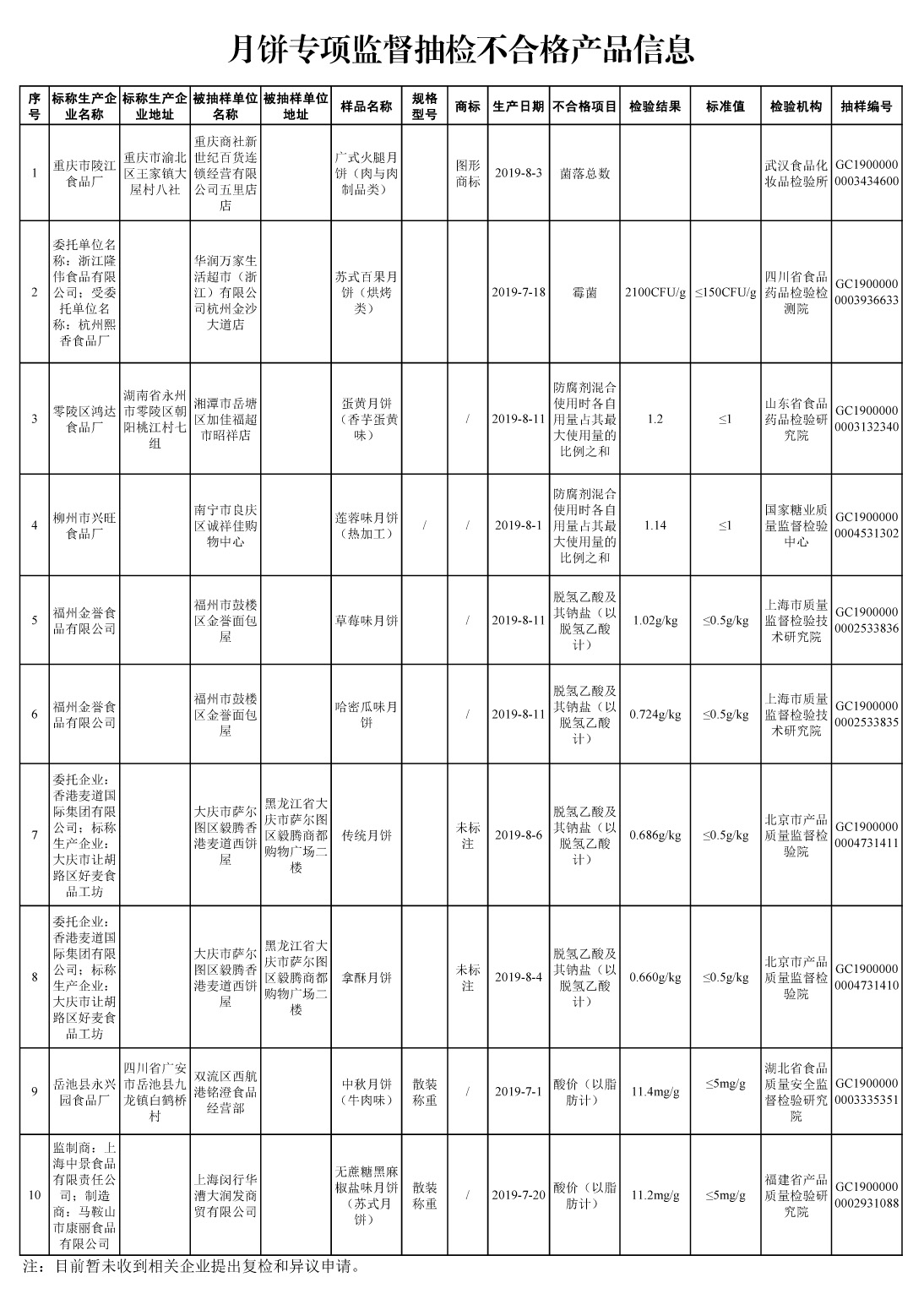 現(xiàn)將專(zhuān)項(xiàng)監(jiān)督抽檢不合格月餅具體情況通告如下: