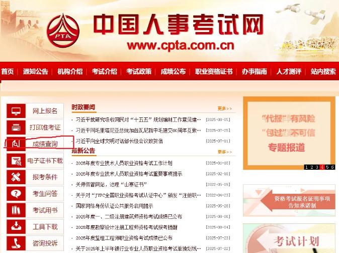 2025年注冊(cè)計(jì)量師職業(yè)資格考試成績由中國人事考試網(wǎng)發(fā)布,查分通道開通后可登錄http://www.cpta.com.cn/查詢。